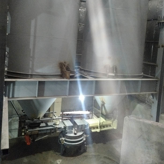 - Après pesage, chaque matériau est envoyé au mélangeur, il y a deux mélangeurs, un travail et un en attente, puis après mélange dans le mélangeur, les matières par lots sont envoyées à la trémie du four par convoyeur.