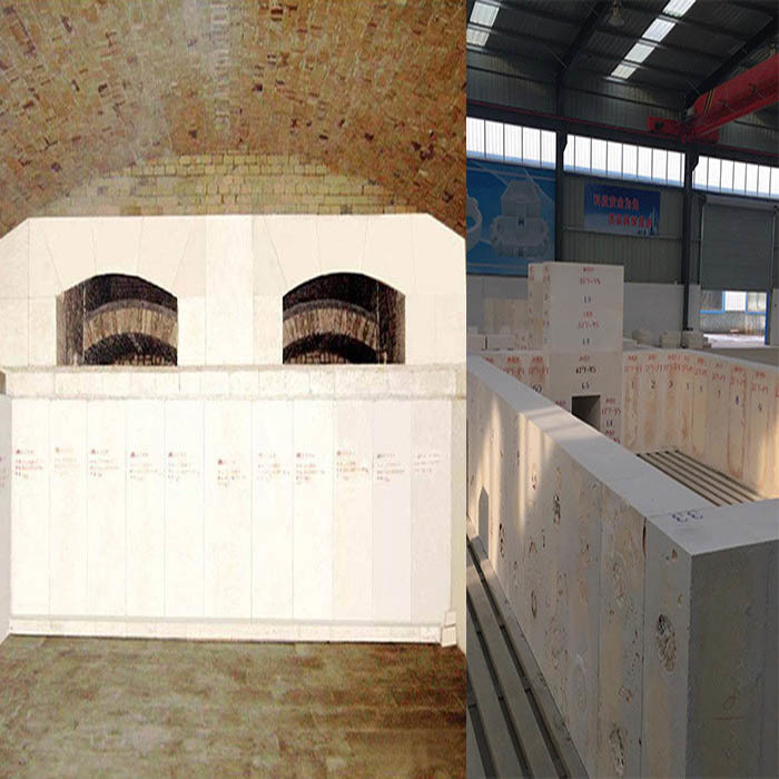 Accès air, gaz deConception de four Industrie de la combustion au gaz Four à verre Production de verre: L'air et le gaz chauffés pénètrent dans la chambre de pré-combustion pour le mélange via cet accès après être sortis du régénérateur. C'est également un accès pour que les gaz de combustion pénètrent dans le régénérateur depuis l'espace de la flamme.